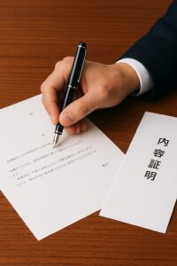 \ 郵便局に行く時間がない・手続きが面倒な方 / 電子内容証明 送付代行オプション 作成済みの文面をデータで送るだけ。e内容証明の登録・発送手続きをすべて代行します。 代行手数料:5,500円(税込) 発送代行を依頼する […]